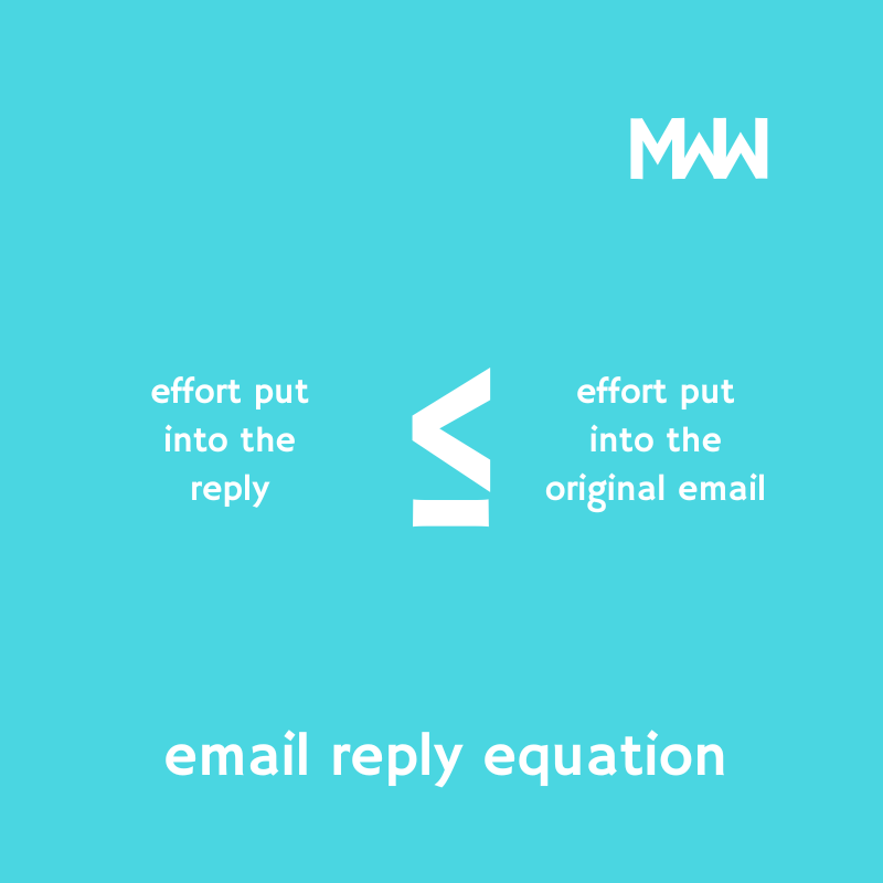 The email reply equation is simple — never put more effort into replying to an email than the other person put into sending it.